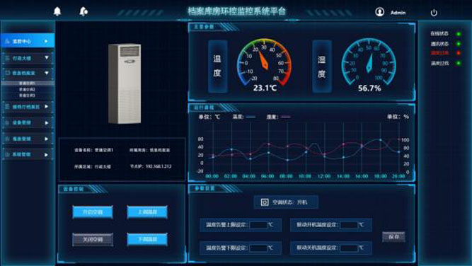 随着大数据时代的到来, 档案室已成为政府机关、企事业单位维持工作业务正常进行的重要组成部 分, 档案室的稳定运行成为保障各部门协调有序工作的必备条件。供配电参数、配电开关状态、温度、湿 度等环境状态、空调工作状态等参数成为辅助运维人员管理的重要内容; 同时针对这些档案室设备需要由 原来的人为判断报警转为自动预警/告警通知模式, 通过智能平台将档案室的数据及时、准确的通知到运维 人员。