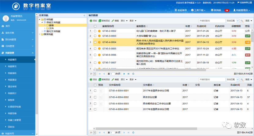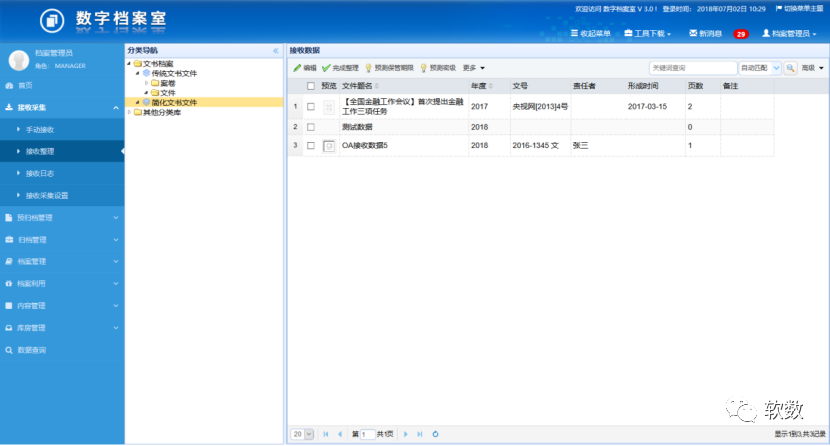 设计开发独立的数字档案室档案系统管理平台,建立档案综合管理系统,规范现有档案工作流程。通过接口方式实现档案系统与办公自动化系统(以下简称OA系统)数据共享和实时交换,完成业务档案收集整理自动化、资源管理数字化、信息利用网络化和借阅流程规范化,达到业务档案实时归档、技术鉴定、存储、载体转换、权限控制、数据迁移、实时发布和条码扫描管理的目的,保证档案的准确性、真实性、可读性、完整性和保密性。
